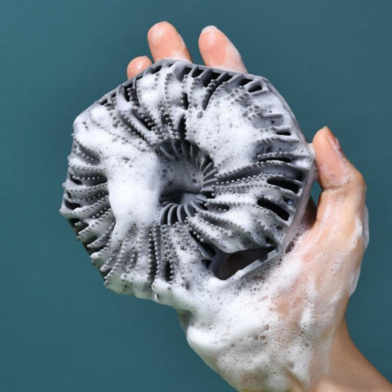 Introducing our innovative hygienic design: made from durable silicone, our scrubber offers easy cleaning and superior hygiene. its material allows for effortless maintenance, and you can even boil it for maximum cleanliness. the loop handle enhances grip and enables convenient hanging for quick drying.