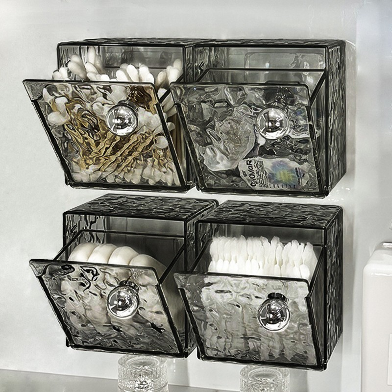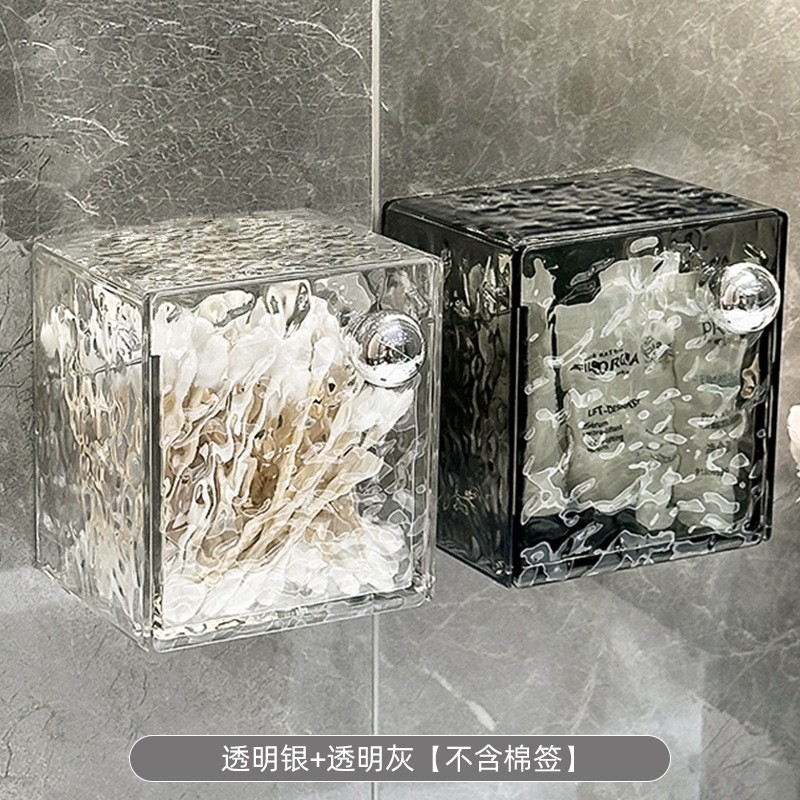 Transparent Acrylic Storage Box Wall Mounted Storage Holder Square Makeup Cotton Box Bathroom Storage Rack Storage Bin Shelf